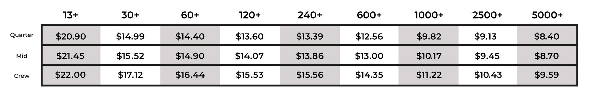 Pricing is R coded and listed in USD.